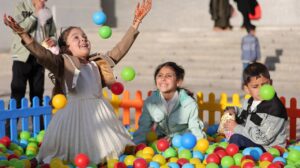 Sekitar puluhan anak diberikan bingkisan dan diperbolehkan bermain di istana yang telah disulap sebagian areanya menjadi arena bermain. (hanoum/arrahmah.id)