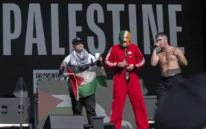 Mo Chara, salah satu anggota grup, mengatakan kepada penonton, “Orang-orang Palestina tidak punya tempat tujuan. Itu rumah mereka dan mereka dibombardir dari langit. Jika Anda tidak menyebutnya genosida, apa yang Anda sebut?”.