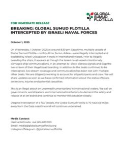 GAZA (Arrahmah.id) -- Beberapa kapal Flotilla Global Sumud—terutama Alma, Surius, Adara— diserang secara ilegal oleh Pasukan Pendudukan 'Israel' di perairan internasional, pada Rabu (1/10/2025) sekitar pukul 20.30 waktu setempat.