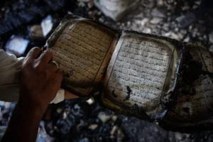 “Semua buku telah dihancurkan, dan tidak ada yang tersisa,” katanya, mengenang serangan sekitar 1.000 orang yang melemparkan bom molotov ke dalamnya.