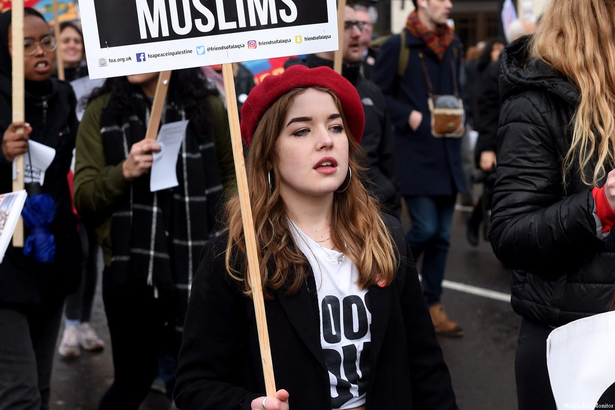 Pengunjuk rasa terdiri dari berbagai LSM dan kelompok, termasuk Muslim Association of Britain, Muslim Engagement and Development (MEND), Muslim Council of Britain, Friends of Al-Aqsa dan Stop the War Coalition.