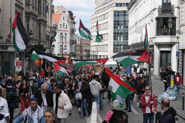 Di ibu kota Belgia, Brussel, sebuah demonstrasi yang awalnya menentang rasisme berubah menjadi aksi besar yang mendukung Palestina. Para demonstran mengibarkan bendera Palestina dan mengecam agresi "Israel" terhadap Gaza yang terkepung.