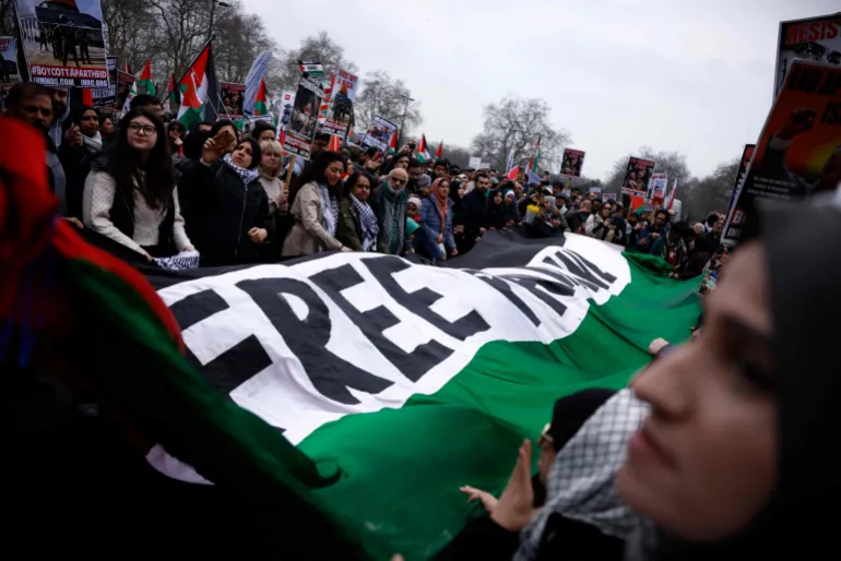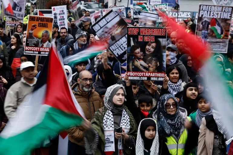 Para demonstran di ibu kota Inggris menyerukan boikot terhadap "Israel" dan menuntut penghentian agresi yang terus berlanjut di Gaza.