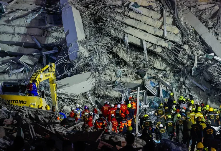 Tim penyelamat di ibu kota Thailand, Bangkok, berupaya mencari korban selamat di area terdampak di pusat kota (Anadolu Agency).