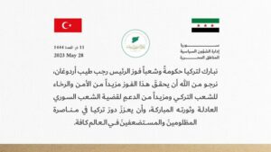 “Kami berharap rakyat Turki mendapatkan lebih banyak keamanan dan rakyat Suriah serta revolusi Suriah mendapatkan lebih banyak dukungan dengan kemenangan ini. Diharapkan ada peningkatan peran Turki dalam mendukung yang kaum yang tertindas di seluruh dunia," tulis pernyataan resmi kantor politik pemerintahan Salvation yang berafiliasi dengan HTS, seperti dikutip dari North Press Agency (29/5).