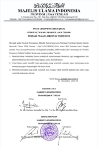 Fatwa MUI Jateng itu merujuk pada fatwa MUI Pusat nomor Kep-74/DP-MUI/XI/2024. (Rafa/arrahmah.id)