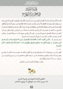 YAMAN (Arrahmah.id) -- Pernyataan terbaru kelompok militan Al Qaeda Semenanjung Arab (AQAP), yang ditandatangani Ibrahim al-Banna menyeru warga Mesir untuk membantu saudaranya yang ada di Palestina dengan membanjiri perbatasan.