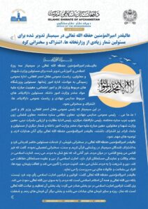 Pernyataan ini Akhundzada sampaikan seminar pendidikan tiga hari untuk para pejabat kementerian dan departemen utama di Kandahar.