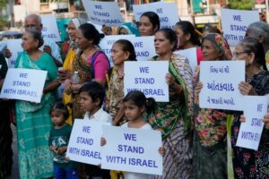 Aksi solidaritas mendukung “Israel” di Ahmedabad, Gujarat Apoorvanand mengatakan kelompok sayap kanan Hindu di India menganggap ada hubungan ideologis antara mereka dan Zionis di “Israel”.