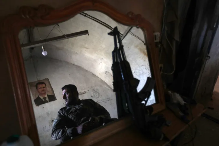 Di kompleks tersebut, anggota departemen operasi militer Suriah menjalani pelatihan menembak dengan sasaran berupa gambar Bashar al-Assad dan ayahnya, Hafez al-Assad.